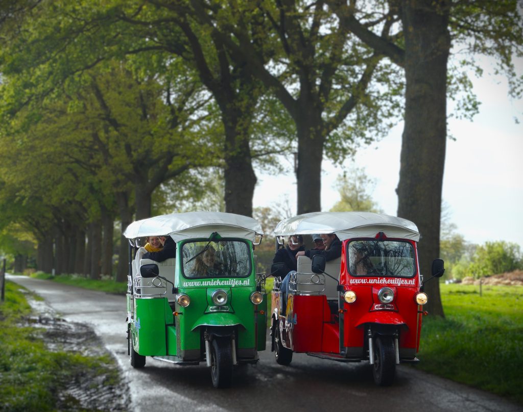 Traditionele TukTuk’s met een benzinemotor stinken, zijn luid en vervuilend. Daarom hebben wij bij Unieke Uitjes zeer moderne, vol elektrische TukTuk’s! De TukTuk is eenvoudig te besturen en rijdt geruisloos! Hierdoor kun je in alle rust van het schilderachtige landschap van de Achterhoek genieten.